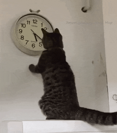 Cat and moving clock